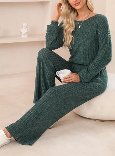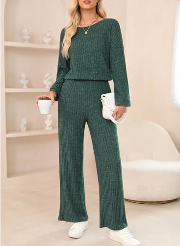 Women Casual Stretchy Ribbed Long Pants Rompers with Pockets Fall Outfits 2024
