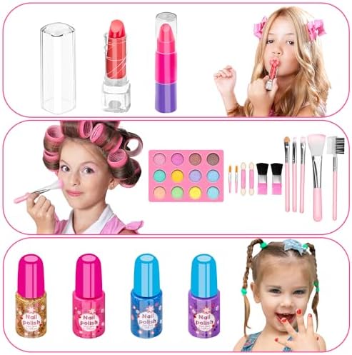 Has your little girl asked for her first makeup kit? Are you looking for a safe children's makeup kit for your child? We have prepared the makeup set with various colors and tools for you, containing almost all needed for makeup. Explore the endless pleasures of beauty with your little princess!