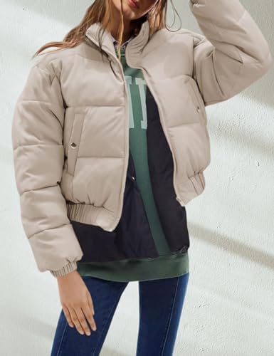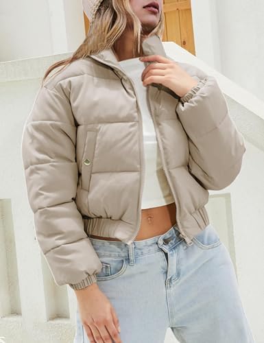Hooever Women's Cropped Puff Jacket Winter Stand Collar Full Zipper Quilt Bubble Coat