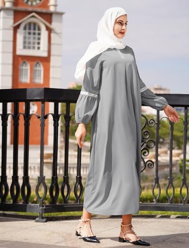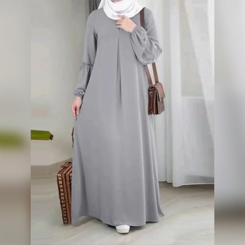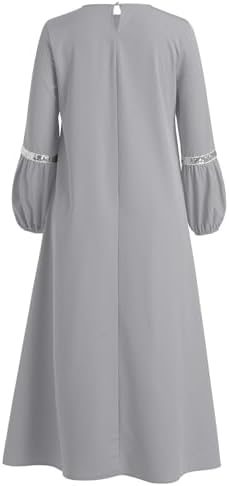 IDOPIP Muslim Abaya Dress for Women Casual Sequin Sundress Solid Dubai Kaftan Robe Party Long Sleeve Islamic Prayer Clothing