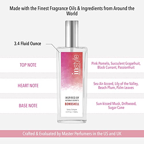 Our high quality perfumes for women are crafted and evaluated by Master Perfumers in the US & UK. These fragrances for women are made with the finest fragrance oils and ingredients from around the world. Inspired by Victoria's Secret's Bombshell - the perfume features a sensual scent opening with fresh pink pomelo and succulent grapefruit, expertly layered with sweet notes of sugar cane and sun-kissed musk that will enchant your senses. Instyle Fragrances for women are vegan, paraben free and cruelty free. These vegan perfumes have never been tested on animals so that you can smell good and also feel good about using them! Eau De Toilette (EDT) strength refers to pure fragrance oil concentrations of between 7 and 15% and like all EDTs will last about 3-5 hours or more depending on the scent and your unique body chemistry. DISCLAIMER: Bombshell is a trademark of Victoria's Secret. Instyle Products LLC competes with Bombshell. The women’s perfume does not use the Bombshell fragrance and is not associated in any way with Bombshell or Victoria's Secret.