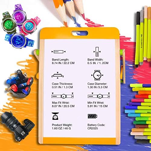 This kids watch is available in multiple colors. Each color is very cute and full of energy and vitality. I believe your child will like it very much.This watch is perfect for children ages 5+ and can make your child looks vibrant during the summer.