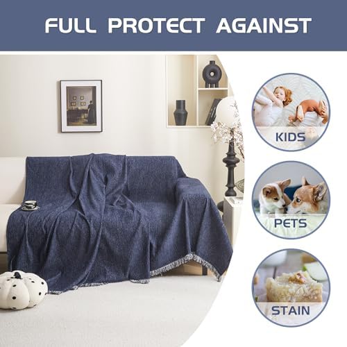 Couch cover which is easy to lay and take without any tools. Just cover it up on your sofa, use your hand to tuck any extra fabric into the sofa gap to let the sofa cover closely integrate with your furniture and seat part to stay in place better.