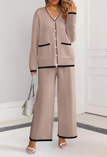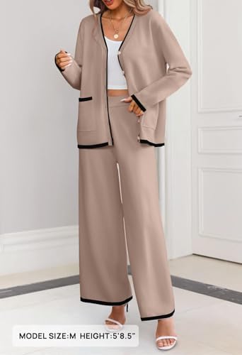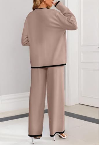 MEROKEETY Women's 2 Piece Outfits Sweater Sets Long Sleeve Knit Cardigan Wide Leg Pants Dressy Lounge Set