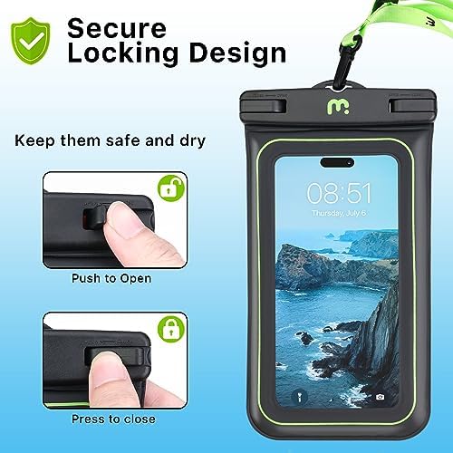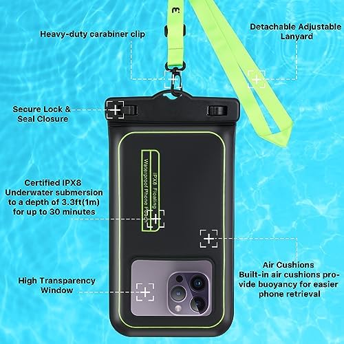 MYBAT PRO 2 Pack IPX8 Waterproof Phone Pouch (XL Size), Cell Phone Dry Bag with Detachable Lanyard, Large Floating Waterproof Phone Case for iPhone 15 Pro Max/14/13/S24 Ultra/S23/Pixel - Black/Greendummy