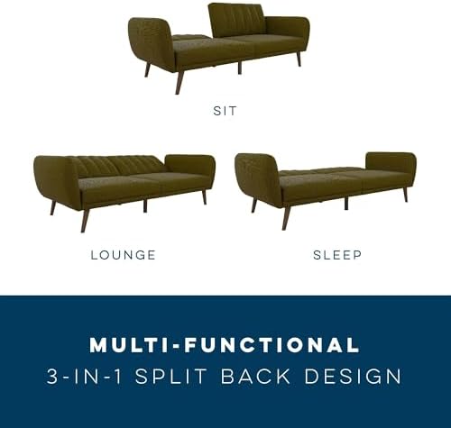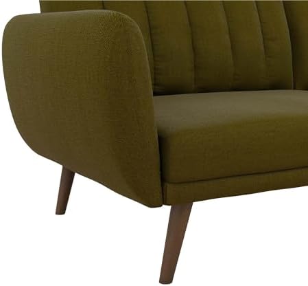 Be embraced by the comfortable cushioning of the Novogratz Brittany linen futon. With its ribbed tufted cushioned back, the Novogratz Brittany Linen futon gives your body all the support you need to sit and relax for hours. The combination of curved armrests and slanted legs work together to provide a unique rounded look that stands out. The linen upholstery adds another element of elegance making this a perfect statement piece for any living space.