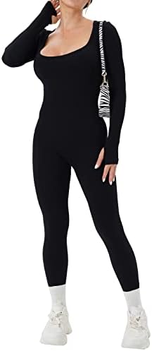 Our long sleeve full-length Romper with a square neckline can be easily paired with high-heeled shoes, boots, sandals, cardigans, jackets, and other accessories.