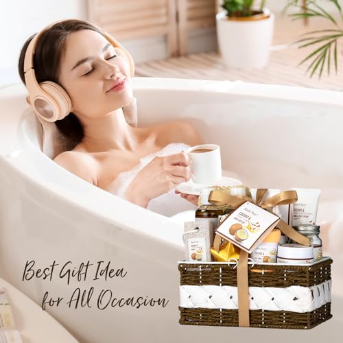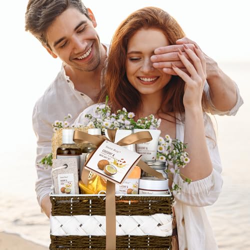 Perfumes Bath Spa Gift Baskets Set for Women & Men Bath and Body Shower Bath Kit, Personal Care Gift Set, Coconut & Honey Almond Pampering Large Luxury Home Spa Kit, Mother's Day Gifts for Mom