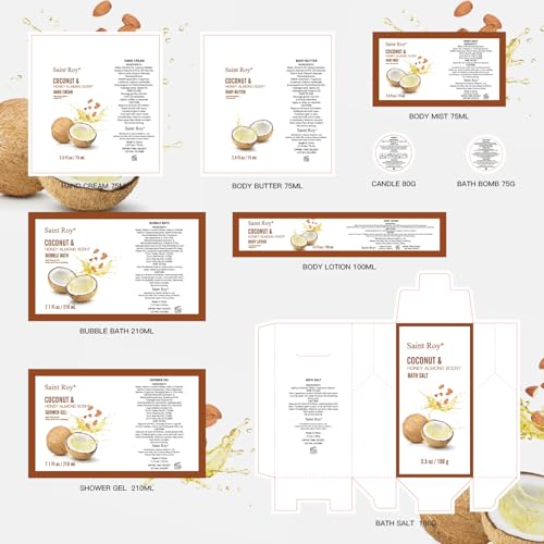 Saint Roy Spa Gift Set – Coconut &Honey almond Scented Bath Essentials Gift Basket withLavender essential oils & Rose essential oils which naturally soothe the body and mind.