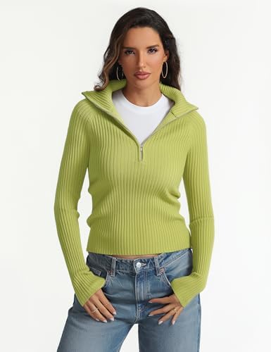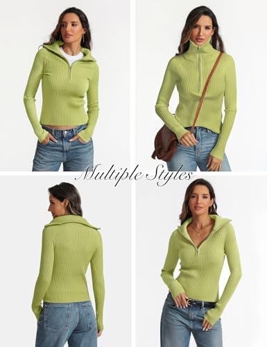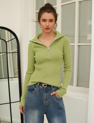 Prettywear 2024 Women's Half Zip Pullover Sweaters V Neck Collared Long Sleeve Ribbed Knit Fall Tops Dressy Casual