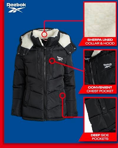 Reebok Women's Puffer Jacket - Heavyweight Quilted Puffer Jacket with Faux Fur Trim Hood - Outerwear Jackets for Women (S-XL)