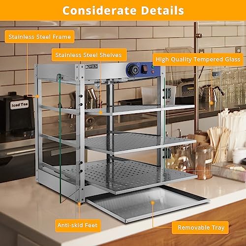 The ROVSUN Commercial Food Warmer Display is perfect for daily and commercial use. Stainless steel material ensures food security and safeguard your health. Removable trays make it easy to display food and clean. Temperature can be adjusted between 86-185℉/30-85℃, keeping dishes warm at your ideal temp. So what are you waiting for? Just take it home!