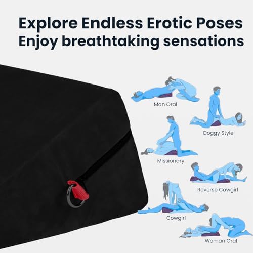 I have to share my excitement about the High Density Foam Sex Wedge Pillow with 2 BDSM Bondages!! It's a game-changer for anyone who is looking to amp up their intimate moments! Bought this one because it’s much cheaper and look decent. It turns out it’s very similar to the Liberator’s one.This sex pillow is a total win! The high-density foam not only supports my weight (around 150 lbs) when I place it under my hip like a champ but also takes our intimate positions to a whole new level of comfort. Seriously, it's like upgrading to first-class for your bedroom adventures. It really does help with penetrating the right spot.And guess what? It's not just about the support. The sex wedge pillow features two zipper layers – one is moisture-repellent, so no need to stress about spills, and the other is machine-washable soft velvet fabric. Talk about practical and easy to maintain!The packaging is fantastic, and they even throw in a 2-year warranty – peace of mind for the win! Unboxing it felt like Christmas morning, and the quality is top-notch. It's like they thought of everything to make sure you have the best experience possible.It also comes with two black and red BDSM bondages. They're there, they're adjustable, and they add a hint of excitement. But honestly, the star here is the pillow itself. And we love the color theme too! Black and red look gorgeous.If you're into exploring new dimensions of pleasure with sex furniture and sex toys, this sex pillow is a must-have. It's not just a pillow; it's an upgrade to your entire intimate experience. Trust me; you won't be disappointed!