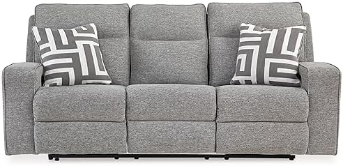 If style is the question, then this power reclining sofa is the answer. Its clean-lined profile is beautifully contemporary. High-performance fabric and plump cushioning make it so easy to comfortably kick up your heels. The adjustable Easy View headrest allows a primo view of the TV, and the extended ottoman provides extra room to really stretch out. Simply sit back, chill out and recline away—this sofa is designed to be your favorite seat in the house.