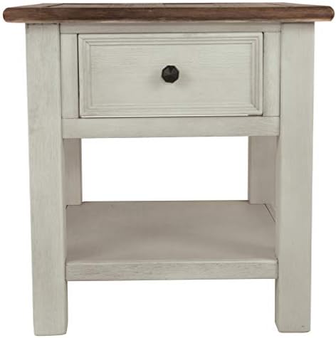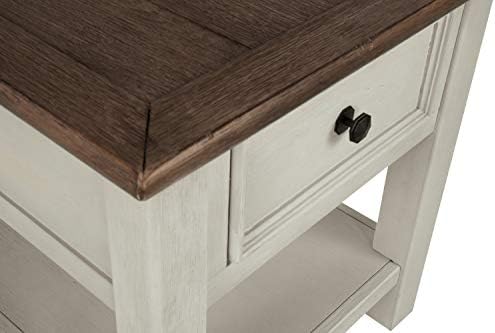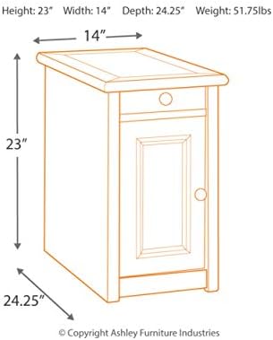 I've been looking a side tables for about 6 months.My other tables are black & I have a dark cherry tv stand w/ built in fireplace.I thought this table would be a bit darker than it is; but, I'm keeping it anyway.I thought I'd have to put it together from start to finish.Nope.I opened it & realized that I needed my husband to help me lift it out of the box because it was pretty much all put together.I removed the remaining packing material from around the table as it is very well wrapped.There is a shelf & brackets to insert inside the table to hold the shelf located under the table.I simply removed them from underneath the table, placed the brackets in the table compartment (there are 3 shelf heights to choose from), plugged in the cord, & I was done.The table looks great, all the outlets & charging plugs work great, the height is perfect, & it fits nicely between 2 rocker recliners in a space with limited room.My one complaint is that there was a bit of chipping on the finish on the base right in front of the door.I happen to own some furniture markers; so, I was able to give it a 5 second touch up that no one will ever notice.The box did come damaged & had tape on a few places that the shipping company put on.The table was so well packed that none of the damage to the box caused any damage to the table.I also love the price.I'd been looking at this on Amazon & other online retailers regularly hoping to see a price reduction and Amazon came through.I was able to buy this for $115.00 which is a phenomenal price.My local well known furniture store wanted about $300 for similar tables.One online retailer known for good pricing was offering this same table for $179.00.So, I am thrilled with my purchase.My family room looks finished now that I no longer have a tray table between my recliners.It wasn't a good look.Anyway, if you are looking for this type of table, I highly recommend this.It's a very well built table.It's a bit heavy so it won't get knocked or out of place accidentally.Love the magazine rack on the back.I can put my remote control caddy inside the compartment with plenty of room for other items and fit a full box of tissues on the shelf in the same compartment.I leave a phone cable plugged in & my husband & I charge our phones & tablets with no hassle.I leave a lamp plugged in & currently have my laptop plugged in.I always had to run an extention cord before so I could plug in multiple items.I didn't think much of it until I got this table.It's made plugging things in so much more convenient.I hope my review helps you make your decision.I didn't include photos as they really wouldn't look any different than the seller's photos.What they show you is definitely what you get.