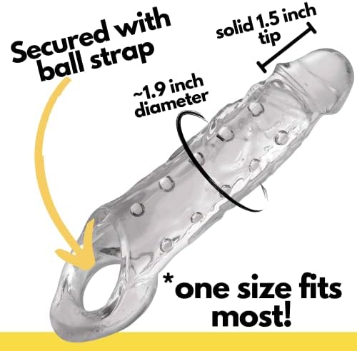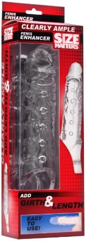 I wanted to surprise my wife with a bigger me. This seemed to be the right product to do it. I've never bought anything like this before. I read every page of reviews about this. I wanted to understand the size of it. Too big and I'd ruin the Mrs. Too small and I'd ruin me. My wife has never complained about my size. She's always quite flattering, but it would be crushing if she said I was less than satisfying. So could I really trust her evaluation? Might she like more? When she hears or reads that size doesn't matter she says, "Oh no, it matters." So with a product named Size Matters how could I go wrong? Just for the joke of the product name it was worth a try.When she opened it up, she laughed and then she gasped, "I don't think it will fit?!" The package does look pretty big in the package. Gratefully she was willing to give it try. I was beyond excited. Fortunately I had practiced getting it on, twice. I have to be erect to get this on. I can't just squeeze the air out and slip into it like others have said here. I use a good amount of water based lube. The best I could do was get halfway in. Then I hit an invisible wall of pneumatic pressure. So I used a flexible rubber tube I had, lubed it up, and put it all of the way in. As I slid in, air was venting out of the tube. Still I was unable to reach the end of it because the tube would collapse and stop venting. I had to push it on the head straight back at me, kind of like forcing a cork into a bottle. Or more like forcing a bottle on to a cork. With enough pressure the tube vented and I could reach the end. I pulled out the tube and suction did the rest. It is tight feeling and very secure. I like the ball ring at the end. You need to use 4 fingers to open it enough for the twins to fall through. Once all that was done, it felt pretty good.So how did go? Well unfortunately my wife didn't notice much difference. I was surprised. It certainly seemed bigger. It added about 1" in length. I had to be careful at first to not go too deep because it hurt her at first. After a little while I was able to go all of the way in. She said the extra length didn't do anything for her because most of her feeling is up front. Also, it's so slippery it didn't offer the same resistance the real thing does. I wondered why it didn't feel better or at least bigger than my original equipment. The rubber on this is about 1/4" thick all of the way around. I should be at least 1/2" wider. I grabbed my wife's fabric measuring tape.This is the info I wish I knew when I bought this. This is a one size fits all product, but not everyone is built the same.My natural gear is 6-1/2" long and 6" in circumference at the tip and the base.The enhancer is 9" long from tip to back of the ring. It says the maximum insertable length is 6-1/2". It makes sense with your boys in the ring. When I wear it I measure 7-1/2" insertable.Empty, the enhancer tip is 5-1/2" in circumference and the base is 6" in circumference. With me in it, the base expands to 6-1/4" circumference. Time for some dick math. Diameter=Circumference/pi. A perfect circle with 6" circ /3.14 = 1.91" wide. A 6-1/4" circ/3.14 = 1.99" less than .1". That's why my wife didn't feel anything different. I only grew .1" in width. If you're ringing up at around 5" circumference you'll see 1/2" diameter of improvement. That's an amount I think your lady friend would feel.Why did I only gain 1/4" circumference of girth? To my surprise, I'm a wee bit bigger at the tip than the enhancer is. Still all things are relative so I figured it would just stretch over me and the extra thickness would translate into a bigger me. But, this enhancer is thick and there isn't much feeling for me beyond suction. I could not stay at attention while it was in use. I still filled it out due to suction, but I wasn't adding anything. That's why the dimension didn't change. When I pulled it off I looked like a golf ball. My wife laughed. All of those interior nubs left their mark. Nothing permanent. It was fun to try. I may cut the end of it off and see if I can feel more and fill this thing out a bit.Bottom line, it's a nice product. The rubber is very good quality. It seems very durable. I like how crystal clear it is.If I had these measurements, I would have passed on this item. It wasn't made for me. I'm sure if you are built differently your better half will enjoy it.