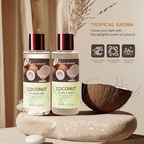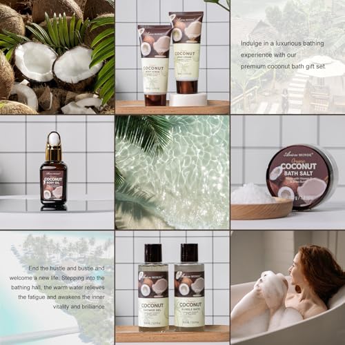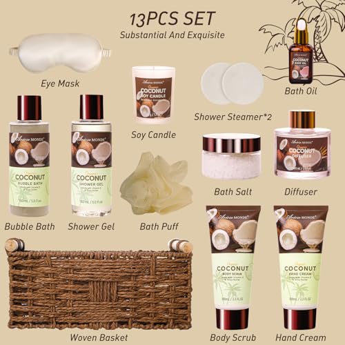 Spa Gift Baskets for Women, Coconut Bath Gift Set for Women Include Bubble Bath, Shower Steamers, Bath Salt. Bath and Body Spa Kit, Mom Birthday Gifts from Daughter, Birthday Gift Basket for Women