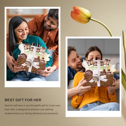 Fathers Day gift Basket for Women, Shower Bath Kit, Personal Care Gift Set, Coconut & Honey Almond Beauty, Home Bath Pampering Large Size Luxury Bath and Body Home Spa Kit, Mother's Day Gifts for Mom