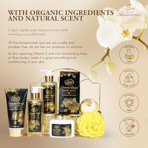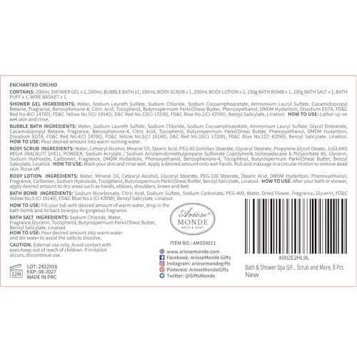 Spa Gifts for Women, Gift Set for Women Enchanted Orchid Scent, Home Spa Kit with Bubble Bath, Body Lotion, Bath Bomb, Bath Salt, Spa Gift Baskets for Women, Birthday Gifts for Women