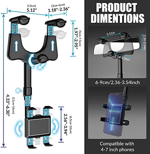 SXhyf Rear View Mirror Phone Holder, 2023 Rotatable and Retractable, Universal Mount, Cell Car Fit for iPhone 11 12 13 14 Pro Max Samsung All Phone