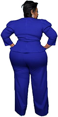 Plus Size 2 Piece Outfits Sets for Women Peplum Waist Flounce Tops and Wide Leg Pants Sets Wear to Work Office OL Outfits Suits Sets
