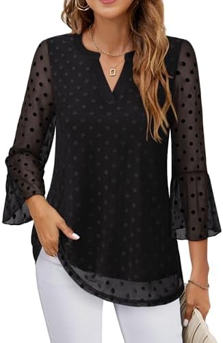 Timeson Women's 3/4 Sleeve Tops and Blouses V Neck Business Casual Shirts
