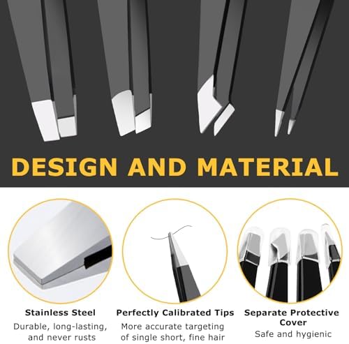- Our set, featuring classic, slant, pointed, and pointed slant tweezers along with a versatile eyebrow brush, is designed to offer professional-level grooming for both men and women.