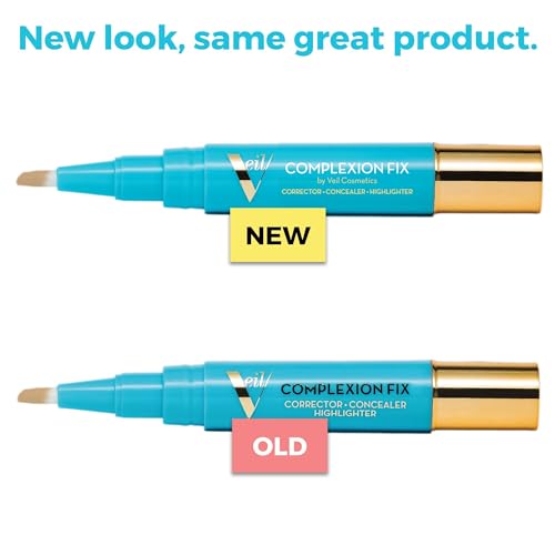 Veil Cosmetics - Complexion Fix Concealer - Liquid Concealer for Under Eye + Dark Circles - Highlight, Contour, Correct - Anti-Aging - Vegan Makeup Pen - Hydrating Lightweight (2G Light Gold)
