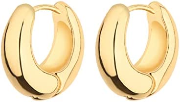 Wgoud Chunky Hoops Earrings with Shiny Thick Rhodium Plating Colors.