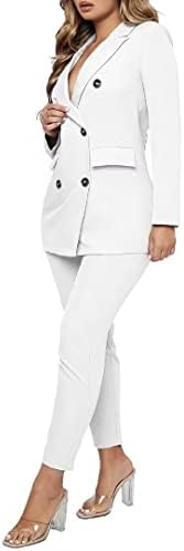 - Features: solid color, fashion notched neckline, decorative pockets, double breasted button, long sleeve blazer jacket, high waist pencil legging pants