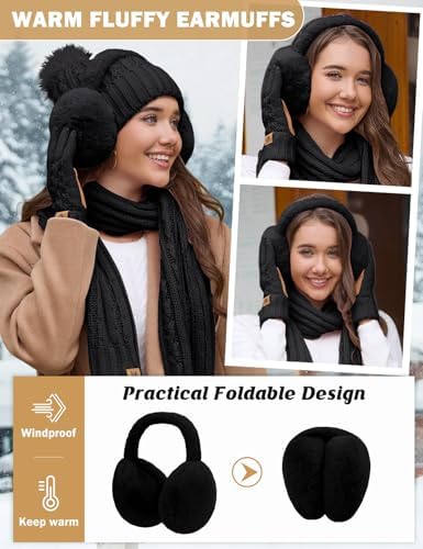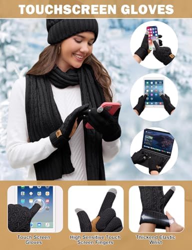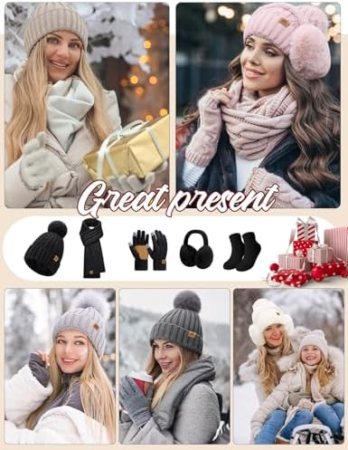 HEEKPEK Women Winter Hat Long Scarf Touchscreen Gloves Earmuffs Socks 5 in 1 Set