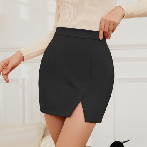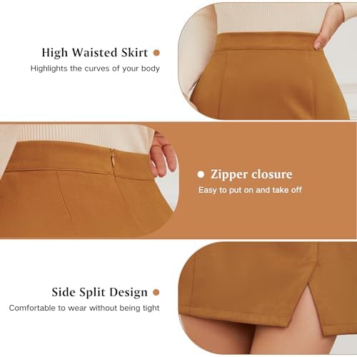 Womens Faux Suede Skirt with Slit High Waisted Mini Skirt Side Split A-Line Bodycon Short Skirt